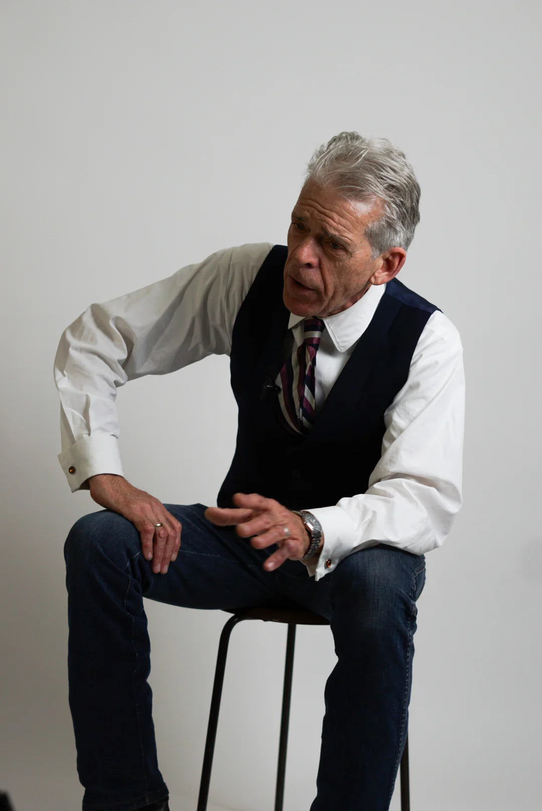 Jeg er ikke ekstremt forfængelig, men jeg kan godt lide at udvikle min egen stil - kombinere forskellige materialer såsom bomuld, tweed og uld og sætte gammelt sammen med nyt. Jeg har måske mere end 150 slips - alle sammen købt brugt, hvoraf flere af dem er helt tilbage fra 30'erne."