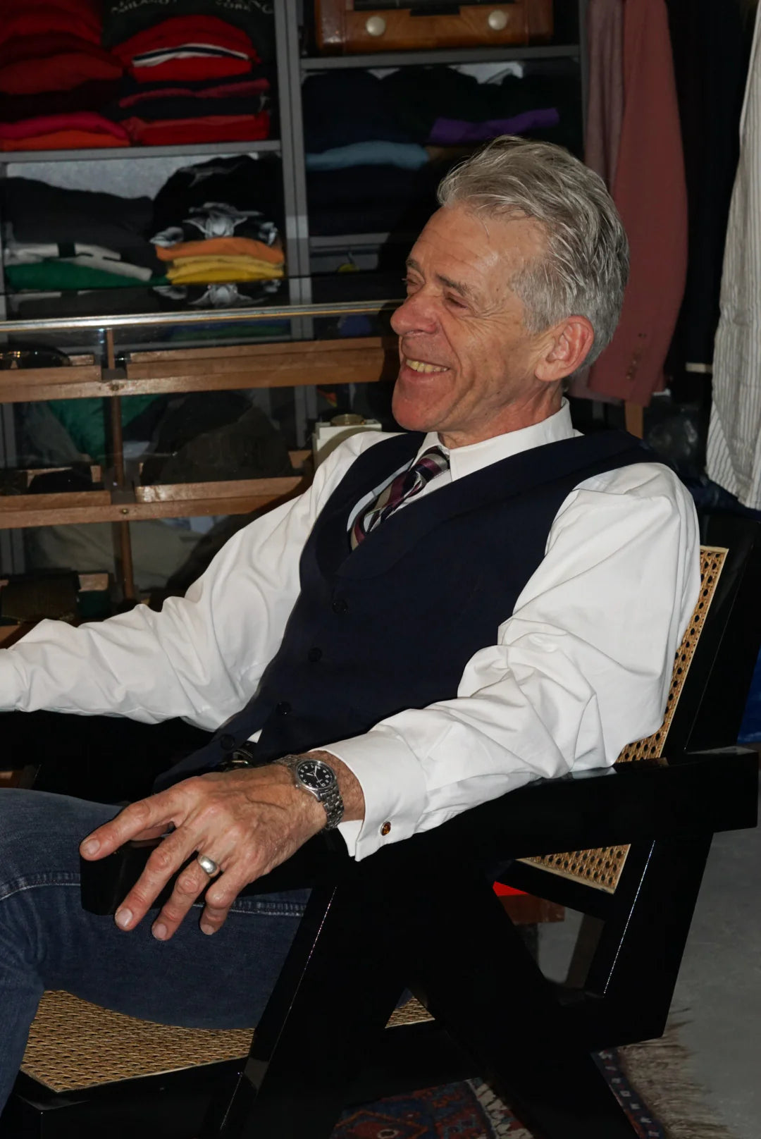 Jeg er ikke ekstremt forfængelig, men jeg kan godt lide at udvikle min egen stil - kombinere forskellige materialer såsom bomuld, tweed og uld og sætte gammelt sammen med nyt. Jeg har måske mere end 150 slips - alle sammen købt brugt, hvoraf flere af dem er helt tilbage fra 30'erne."