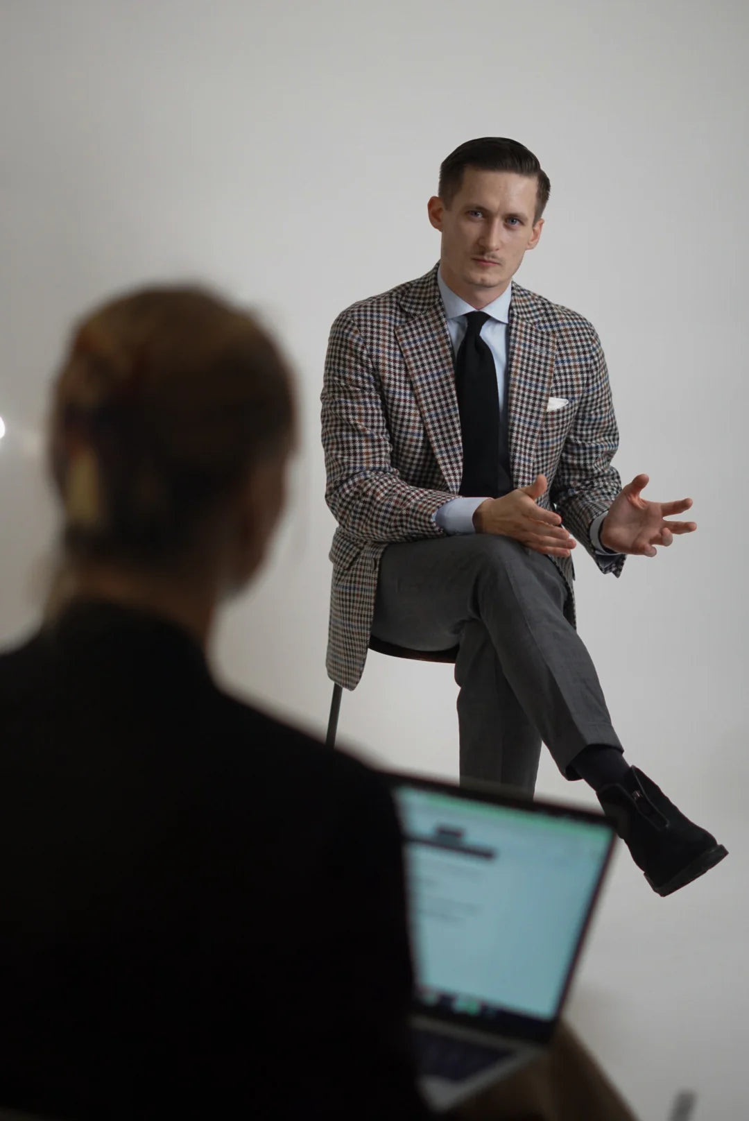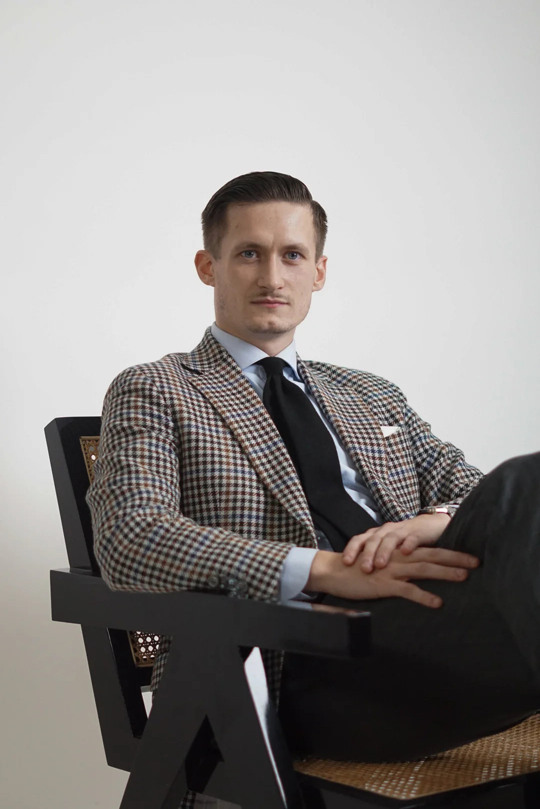 "Jeg går stort set aldrig ud af døren uden en blazer. Og det er uanset om jeg har chinos, jeans eller suit pants på - ligesom jeg også kan finde på at smide en rullekrave under. Jeg føler mig simpelthen bare godt tilpas med en blazer på. Så er jeg mig selv."