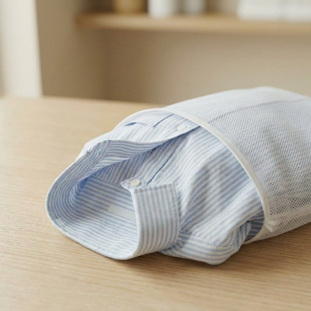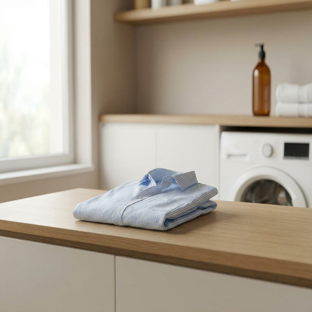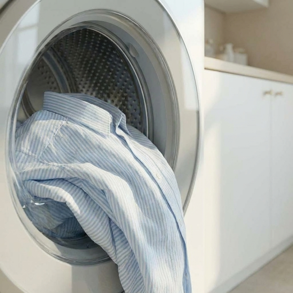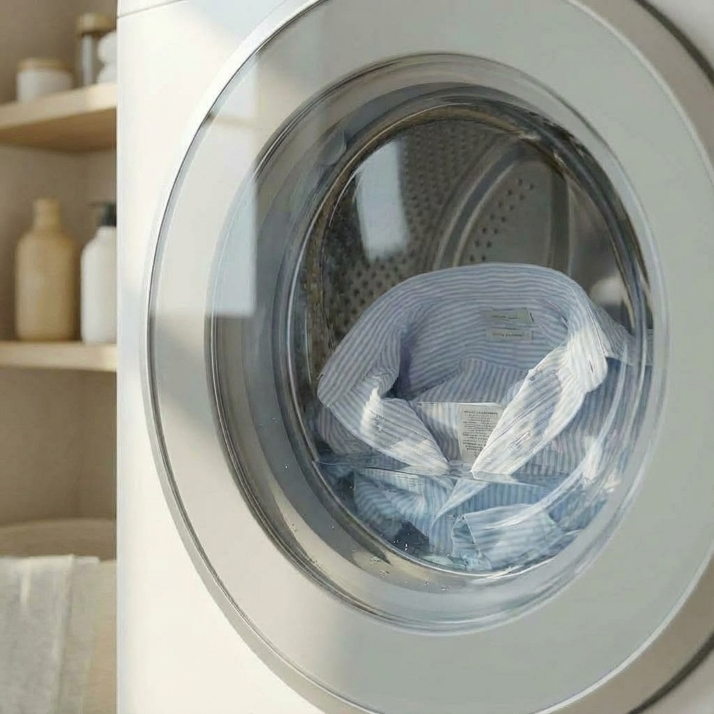 Wash white shirts separately at 30–40°C without fabric softener. Avoid chlorine-based detergents and hang the shirt up immediately after washing.
